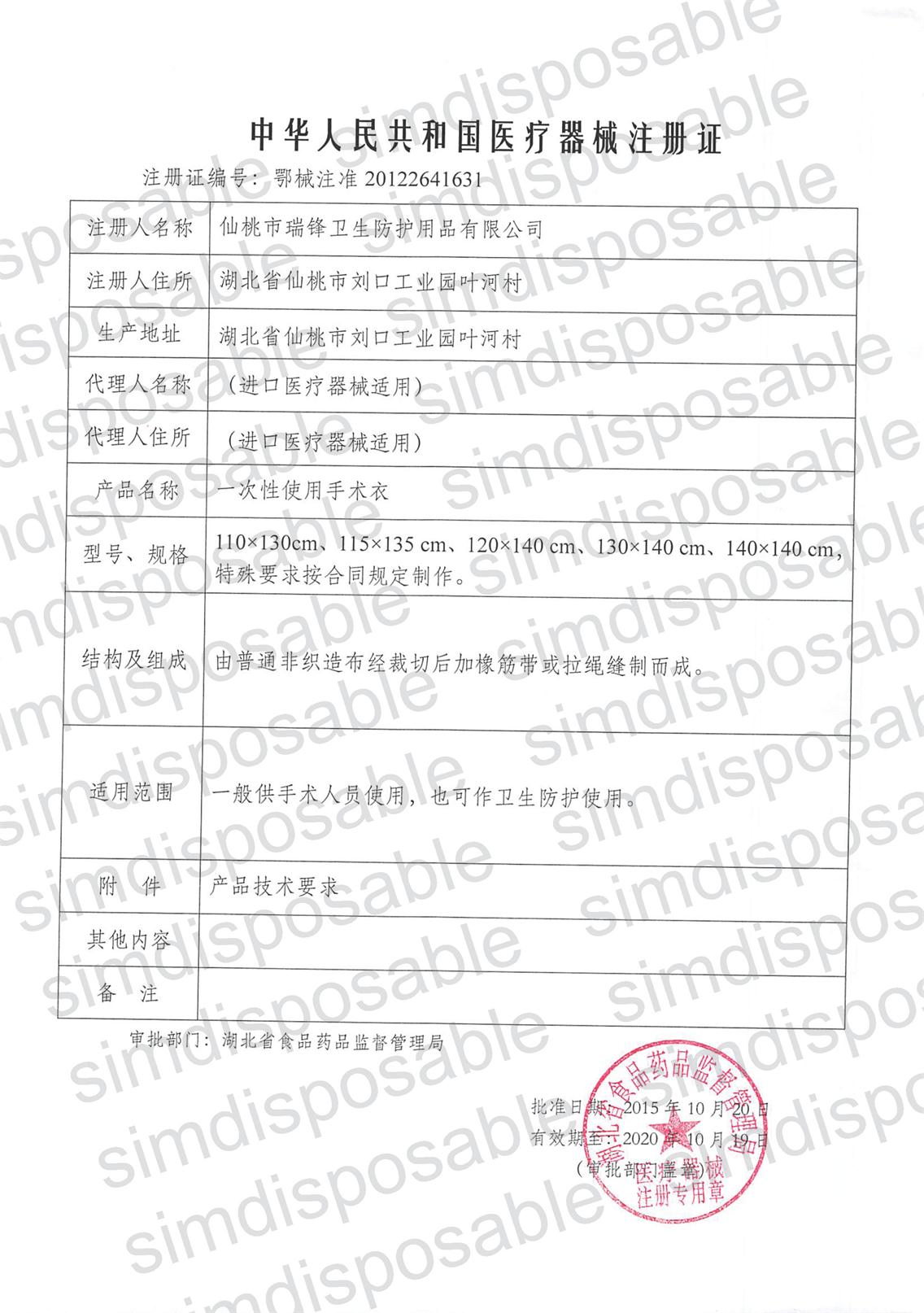 仙桃市瑞鋒衛(wèi)生防護(hù)用品有限公司(Sword Xiantao Disposable Protective Products Factory)位于“江漢明珠”----湖北省仙桃市劉口工業(yè)園,西領(lǐng)古城荊州,滬蓉高速公路、318國(guó)道和滬蓉鐵路橫貫全境,到武漢港100公里,交通便利,地理位置優(yōu)越。